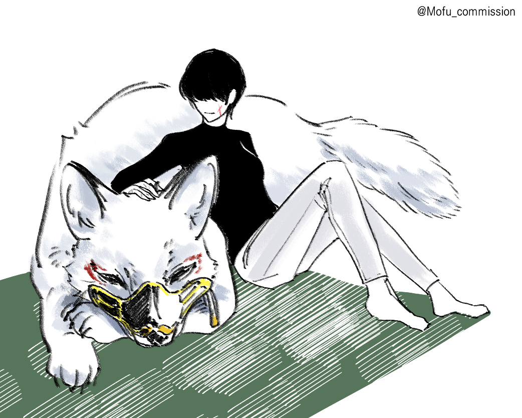 시시는 창백해진 나키기츠네의 볼을 더듬으며 안색을 살폈다.