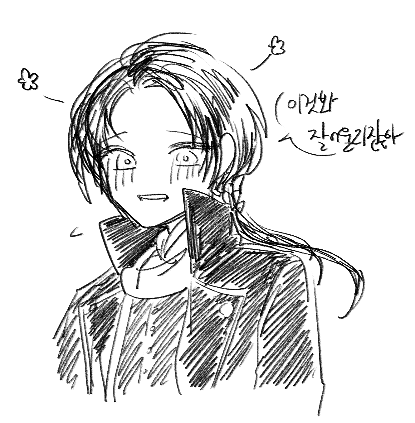 주인님, 웃어주세요. 미소를 보여주세요.